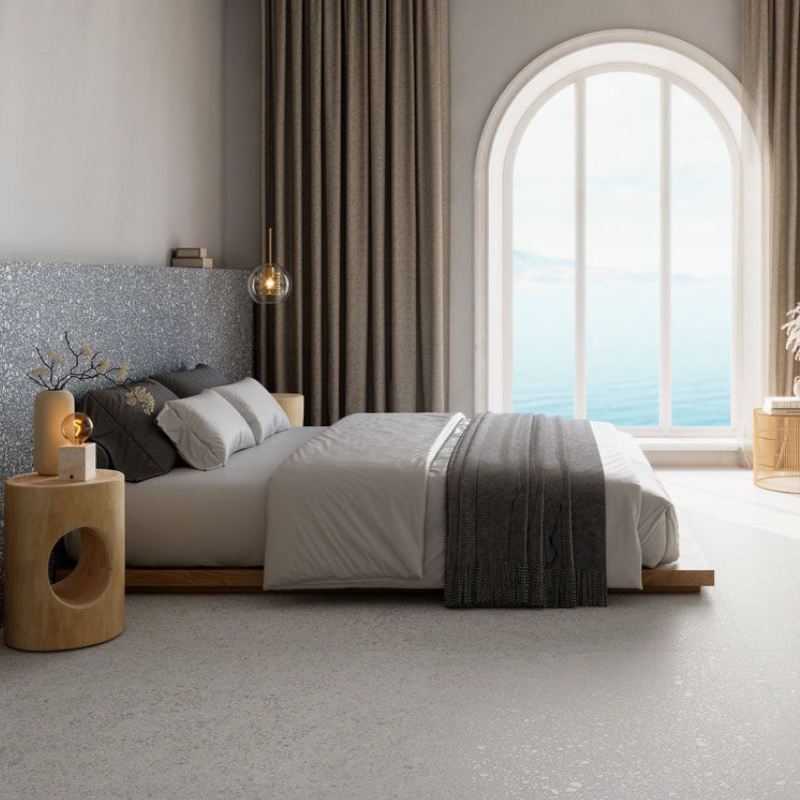 Les carreaux de porcelaine Santorini Blanco 24×24 sont clairs et raffinés, au look de terrazzo et de pierre naturelle douce, ils créent une ambiance lumineuse, moderne et élégante, parfaite pour les intérieurs minimalistes, méditerranéens ou contemporains. Son fini est légèrement texturé, ce qui la rend unique. Oserez-vous?